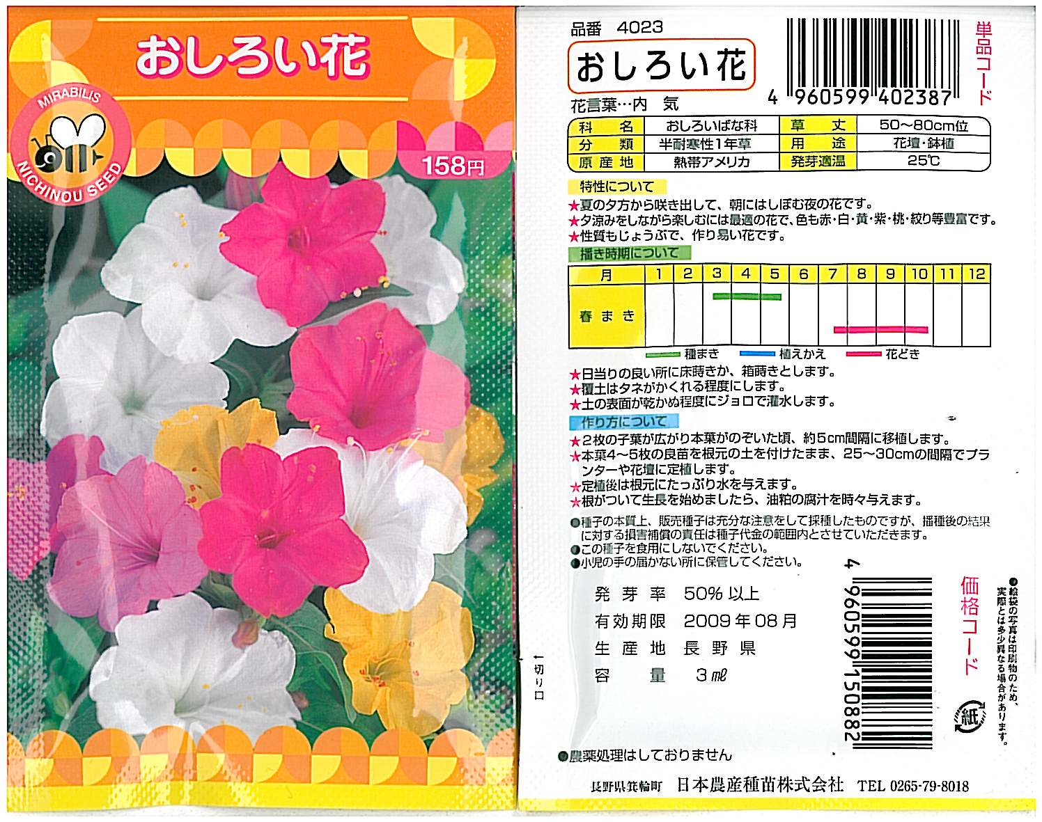 夕方から咲き、ほんのり香ります。おしろい花 価格: 105円 レビュー評価: 0.0 レビュー数:0 夕方から開花し、翌日にはしぼんでしまいます。初夏から秋の庭先で赤、桃、黄、白色等美しく咲き競っているさまはそのかすかな香りと相まって風情があります。【育て方】(1)床土は細かく表面を平らにし、大粒の種子ですので種子が隠れる程度の深さに押さえます。発芽するまで床土が乾燥しないようで生育のに注意します。(2)移植を嫌いますので、苗の小さいうちに根の部分の土を崩さないようにそっと移植するか花壇に直接まきます。(3)日当たりが良い場所を選び、水はけの良い土壌を使います。丈夫で生育の旺盛な植物ですので、なるべく有機質を多めに施しておきます。まく時3?6月 咲く時7?10月 発芽適温22℃ 内容量5ml Supported by 楽天ウェブサービス |